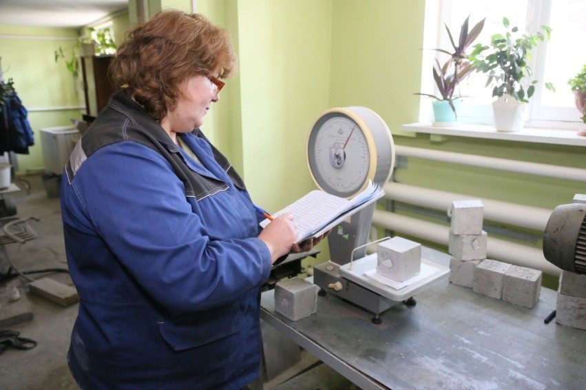 В строительной лаборатории «ЖБИ-19» идет проверка качества изделий на всех этапах: