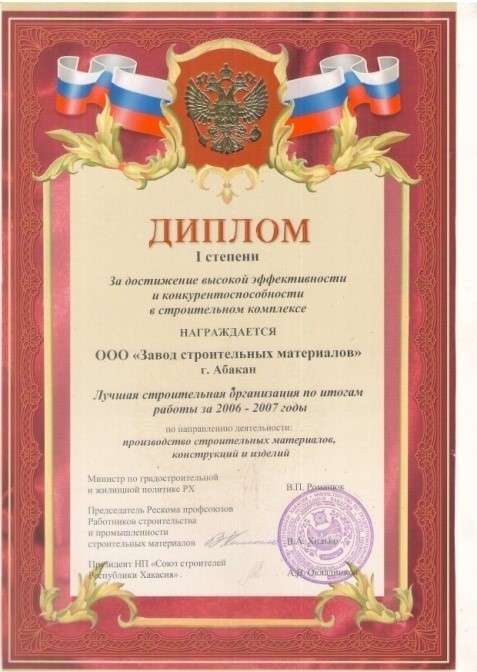 Сегодня «ЖБИ-19» зарекомендовал себя на строительном рынке юга Сибири как надежное и лояльное предприятие, с индивидуальным подходом, гарантией качества и гибкой ценовой политикой. И каждая награда предприятия является доказательством этого.
